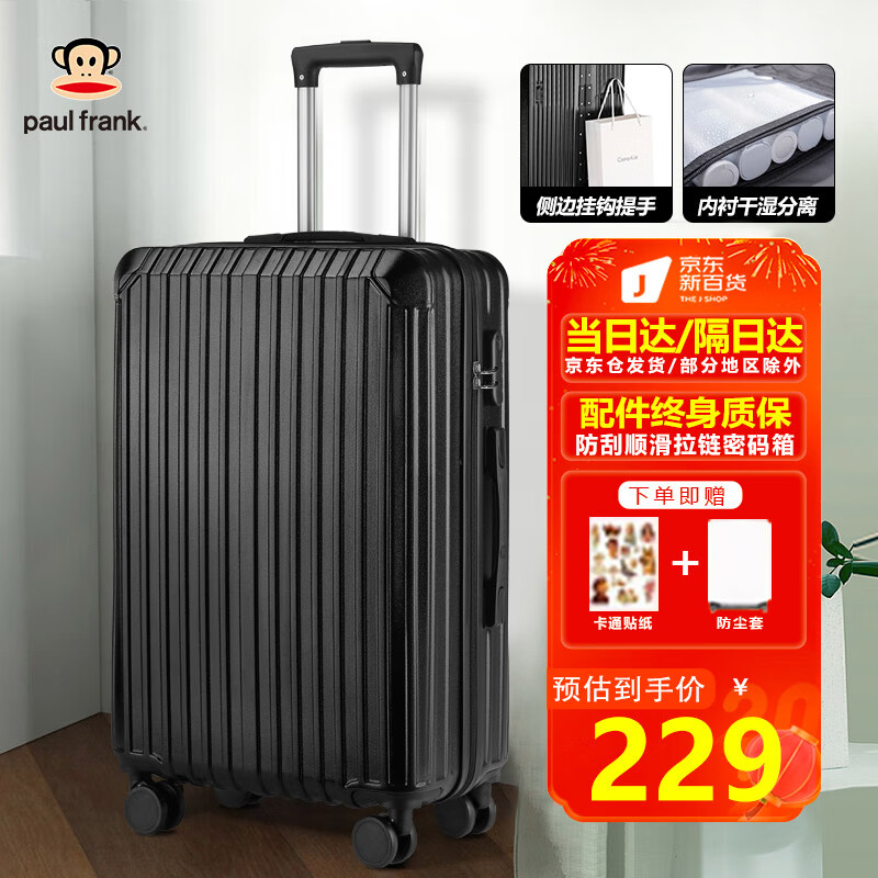 大嘴猴行李箱男拉杆箱女26吋旅行箱轻音万向轮拉链密码箱学生大容量皮箱价格:229.00元!
