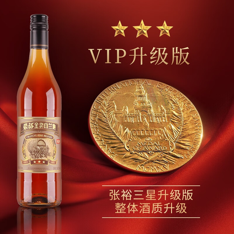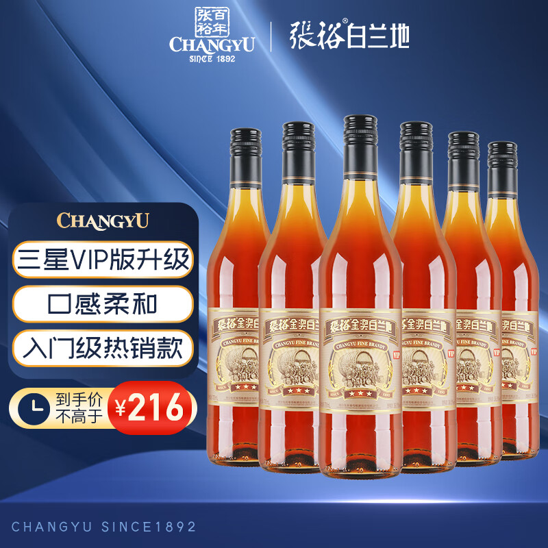 张裕 三星金奖白兰地 700ml*6瓶 整箱装 VIP三星升级版洋酒价格:216.00元!