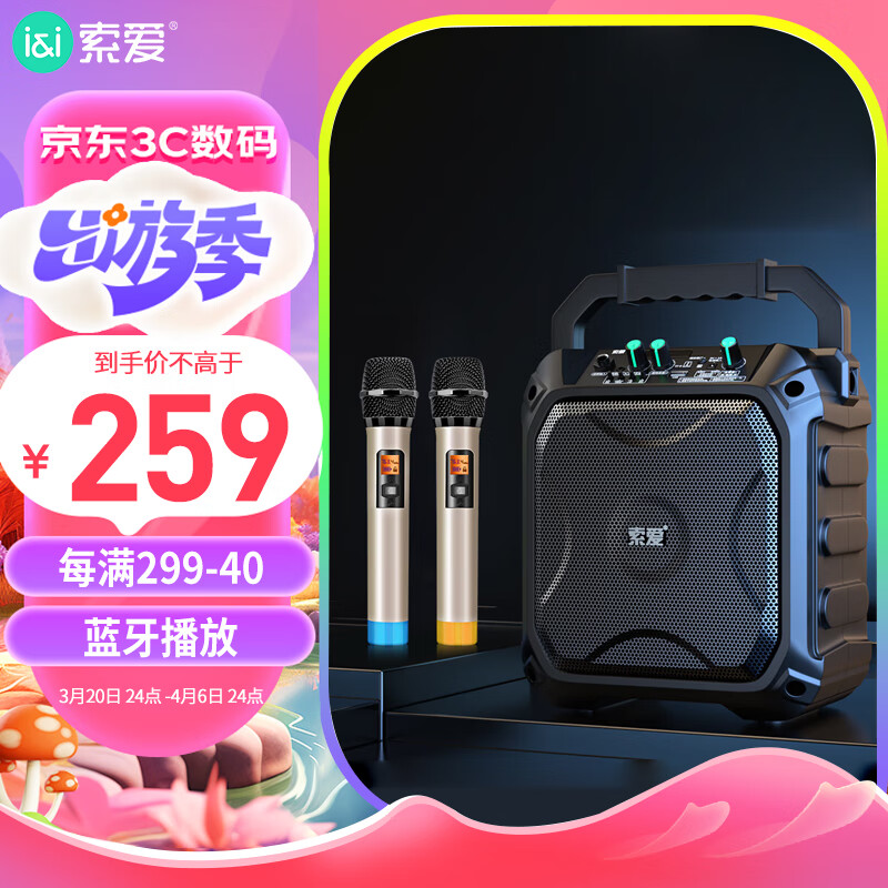 索爱(soaiy)SA-F22 手提音响高低音户外蓝牙音箱大音量广场舞唱歌k歌直播小型家用音箱无线双话筒价格:299.00元!