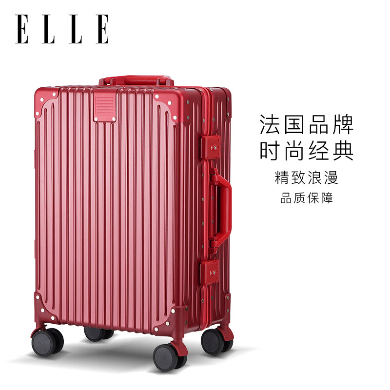 ELLE法国品牌行李箱红色26英寸铝框时尚拉杆箱大容量女士结婚密码箱价格:489.00元!