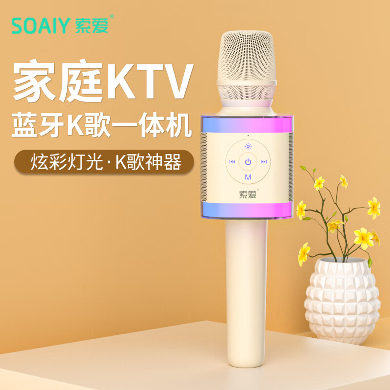 索爱(soaiy)MC37麦克风一体音响家用无线蓝牙K歌宝儿童话筒家庭ktv声卡拉ok唱歌神器【油彩白】价格:269.00元!
