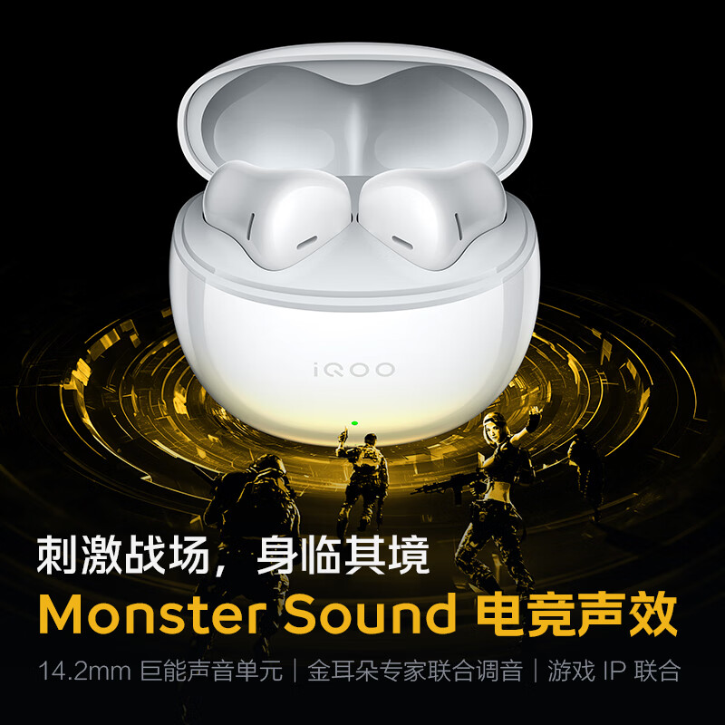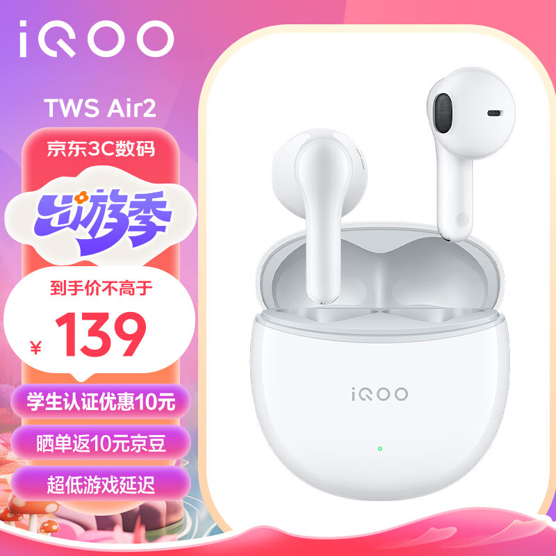 vivo iQOO TWS Air2 奔霆白 55ms超低游戏延迟 电竞声效 超轻佩戴 30小时超长续航 iqootwsair2价格:139.00元!