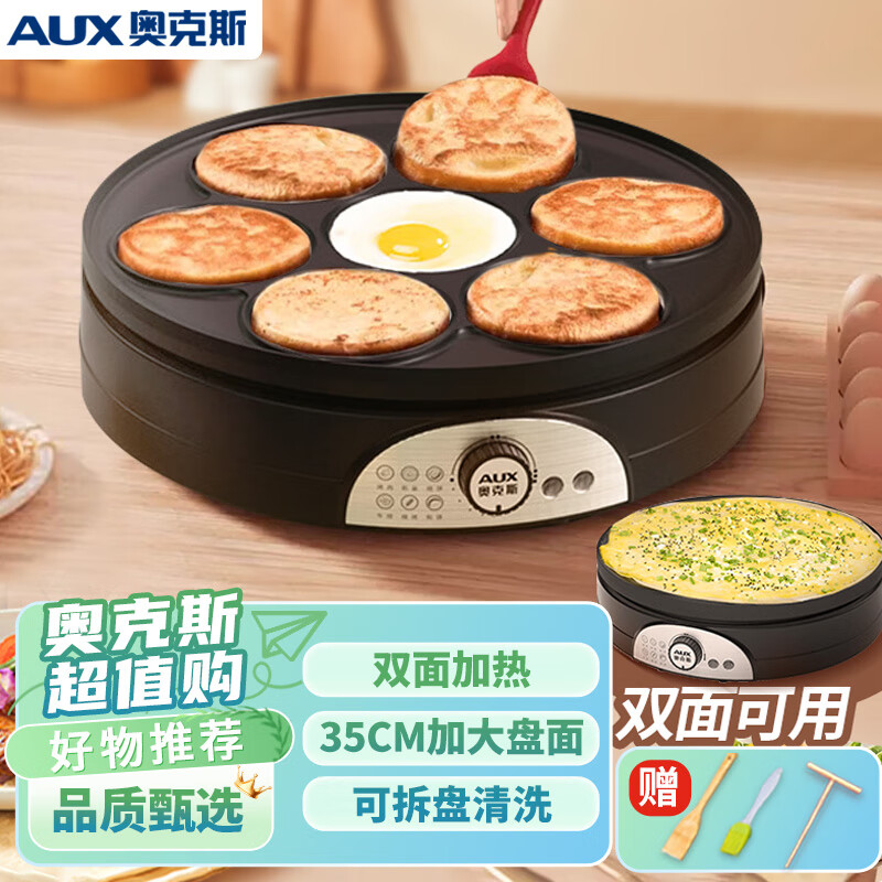 奥克斯(AUX)电饼铛商用七孔煎饼煎蛋鸡蛋汉堡机家用烙饼早餐机多功能烤盘煎饼锅LA-102SJ-35价格:249.00元!