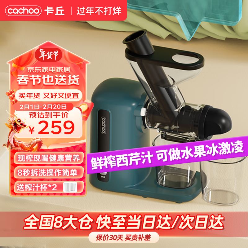 卡丘原汁机汁渣分离家用果蔬西芹榨汁迷你小型双料口自动慢磨机原汁机多功能鲜榨果蔬 【不加水的原汁机】-复古绿价格:499.00元!