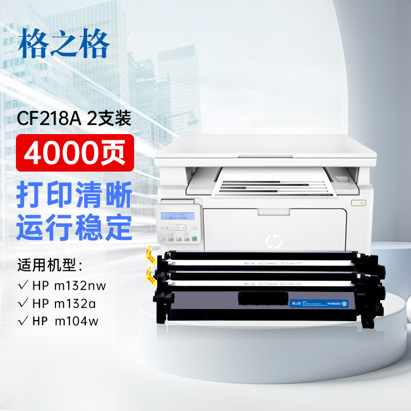格之格cf218a硒鼓 适用惠普m132nw硒鼓 m132snw m132fn m104a m104w打印机墨盒 惠普m132a硒鼓带芯片双支装价格:149.00元!