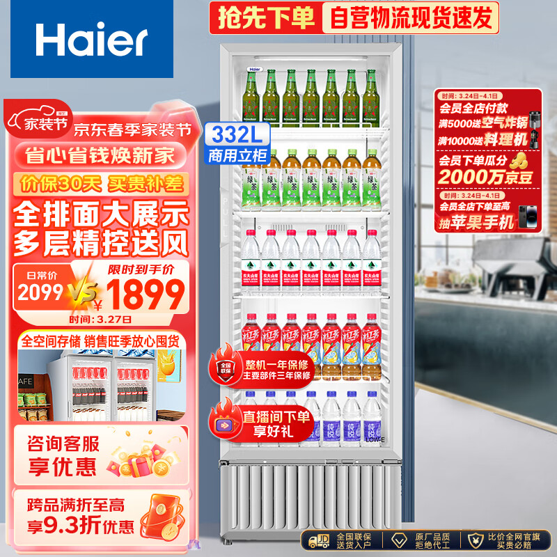 海尔(Haier)320新形象多层风冷全空间不倒水风冷无霜立式展示柜冰柜 饮料冷藏柜商用保鲜柜冷柜SC-332价格:2199.00元!