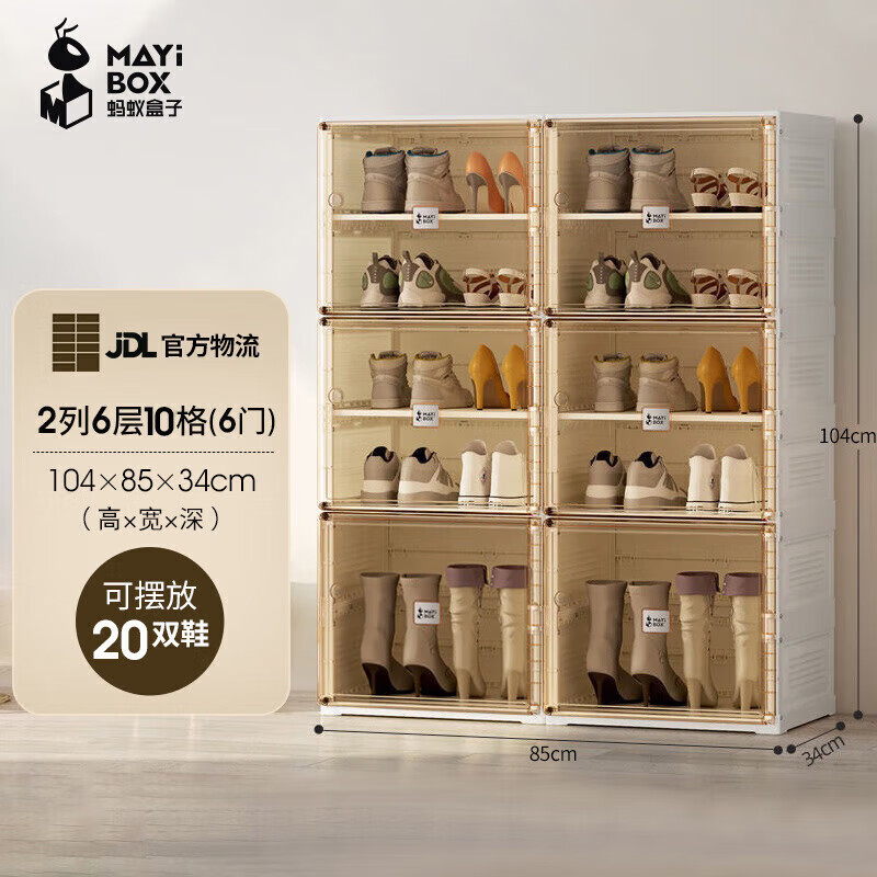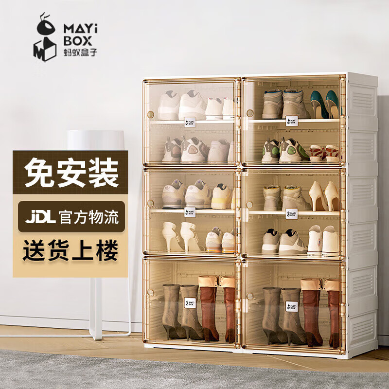蚂蚁盒子(MAYIHEZI)免安装简易鞋柜门口家用玄关折叠透明塑料超薄鞋柜 2列6层10格价格:449.00元!