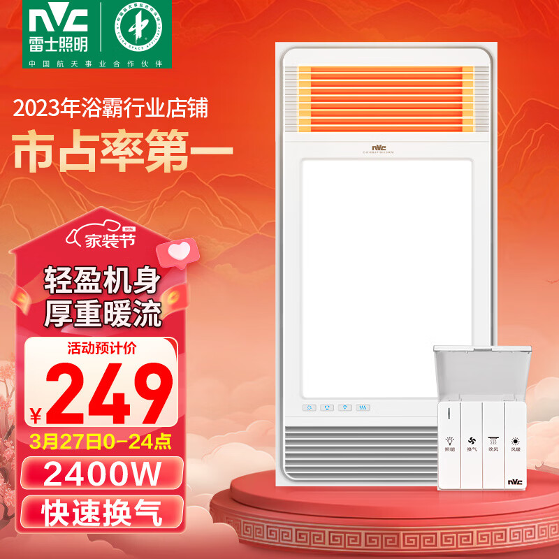 雷士(NVC)超薄极简四合一浴霸暖风照明排气一体机卫生间集成吊顶浴室电暖器价格:248.00元!
