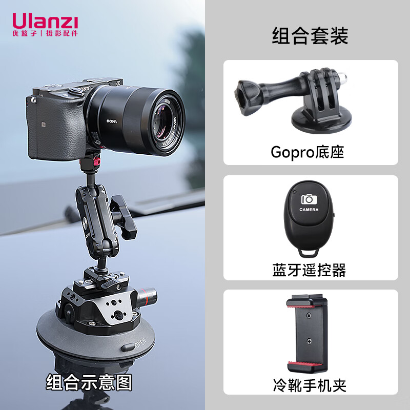 ulanzi 优篮子 SC-02强力相机车载吸盘支架手机夹蓝牙套装运动相机车载便携式真空吸盘固定支架影视拍摄vlog价格:211.00元!