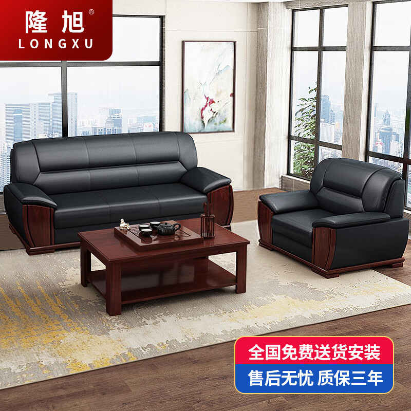 隆旭办公沙发茶几组合办公室会客接待沙发商务皮沙发 西皮3+1+长茶几价格:2980.00元!