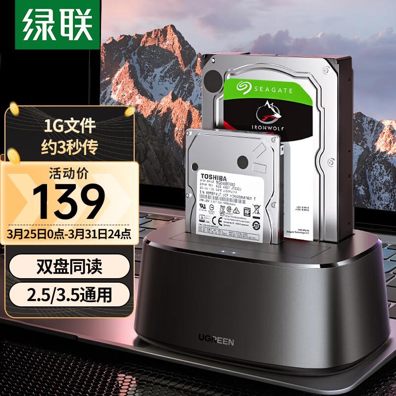 绿联 硬盘底座2.5/3.5英寸 笔记本台式SATA串口SSD固态移动机械双盘位外置外接硬盘盒子拷贝机硬盘笼价格:149.00元!