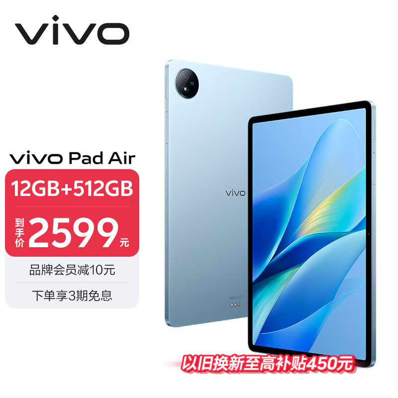vivo Pad Air 11.5英寸平板电脑(骁龙870高性能芯片 12GB+512GB 144Hz原色屏 NFC一碰互传)自在蓝价格:2599.00元!