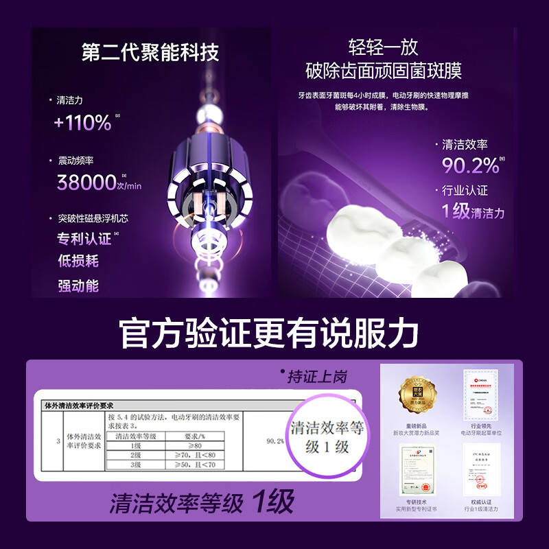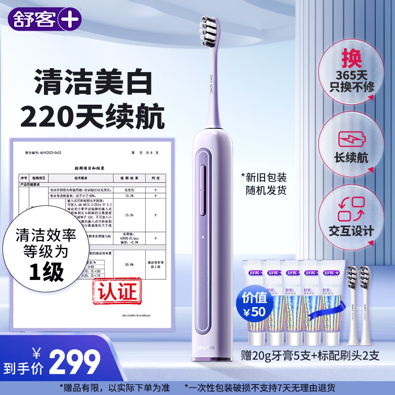 舒客情侣电动牙刷智能换区清洁成人/学生送男友/女友软毛护龈5档声波交互提醒GT2紫价格:419.00元!