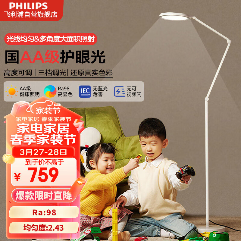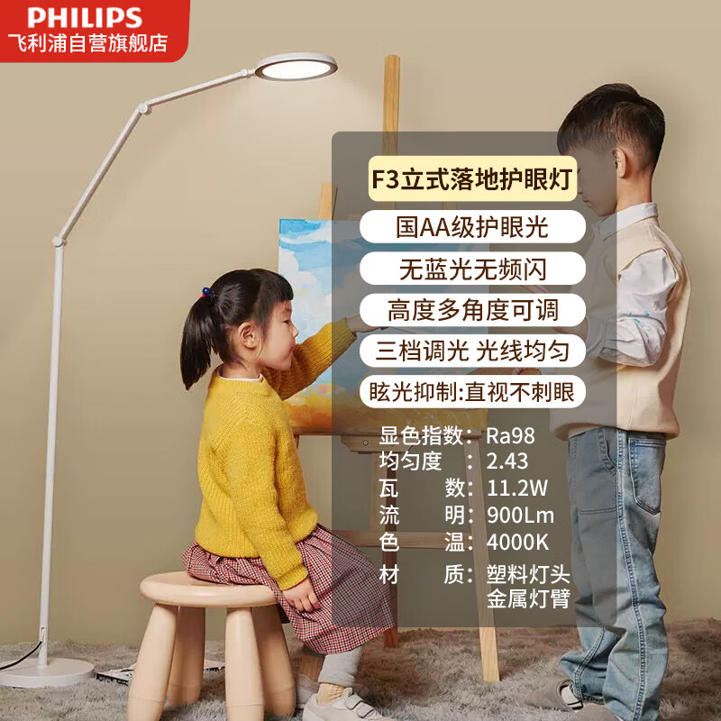 飞利浦(PHILIPS)护眼灯台灯立式落地沙发客厅卧室书房学生学习床头阅读护眼灯F3价格:929.00元!