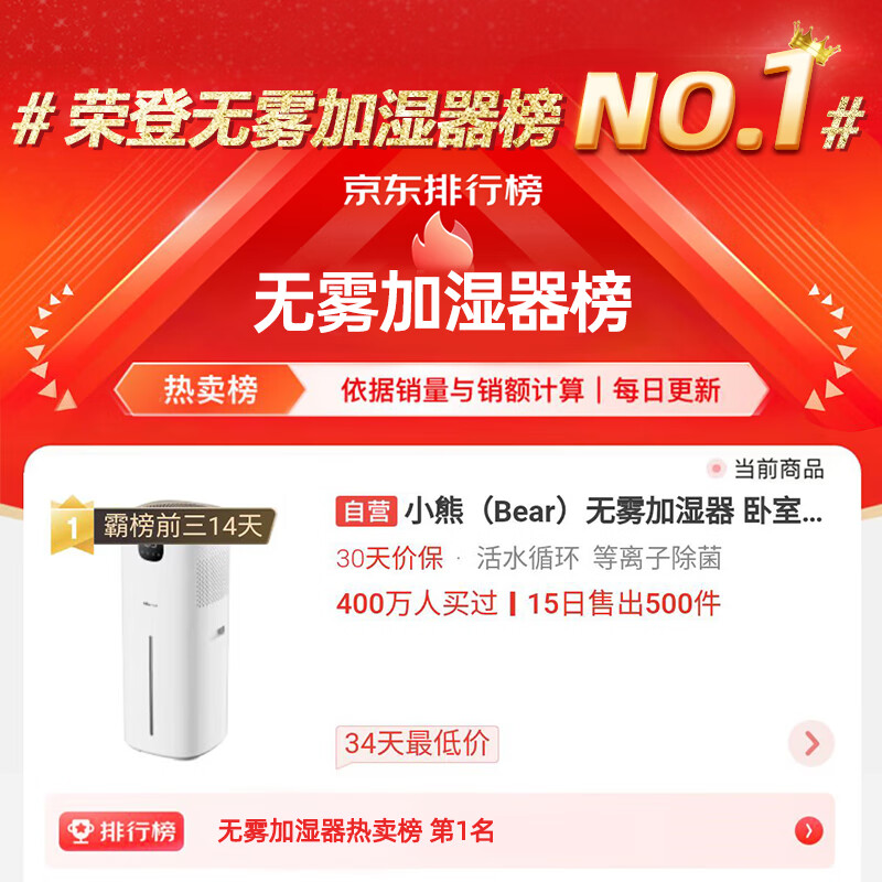 小熊(Bear)无雾加湿器 卧室轻音婴儿用办公室大容量 家用低噪智能恒湿母婴落地空气加湿JSQ-FA0B1升级款价格:649.00元!