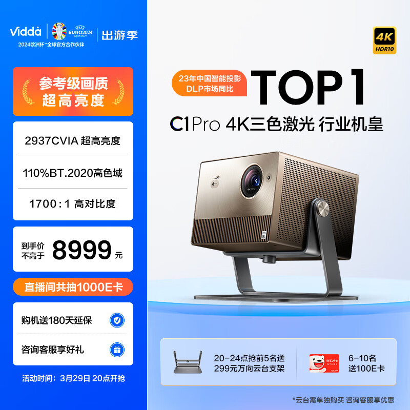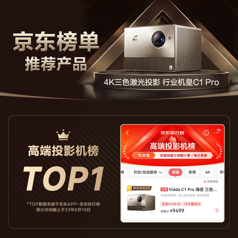 Vidda C1 Pro海信 4K超高清纯三色激光 投影仪家用电视家庭影院卧室白天投墙办公智能护眼240Hz游戏投影价格:8999.00元!