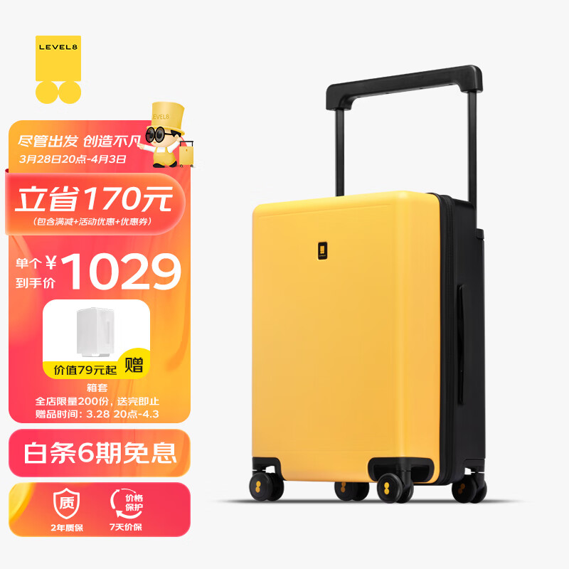 地平线8号(LEVEL8)行李箱男女密码拉杆箱大旅行家20英寸登机宽拉杆PC旅行箱黑黄拼色价格:1199.00元!