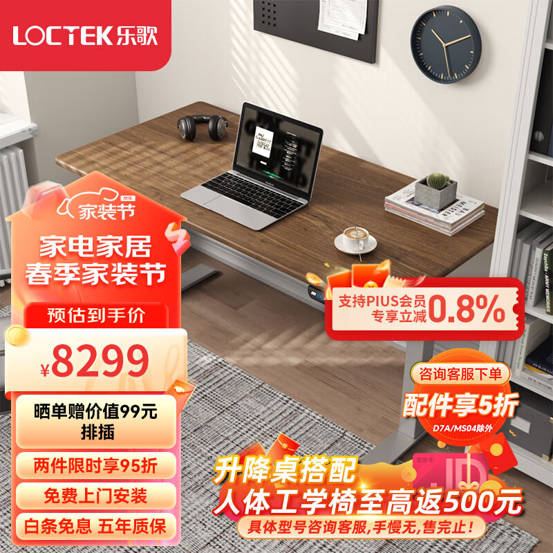 乐歌电动升降桌电脑桌办公桌书桌学习桌 E5-N/1.8m 实木黑胡桃木套装价格:8299.00元!
