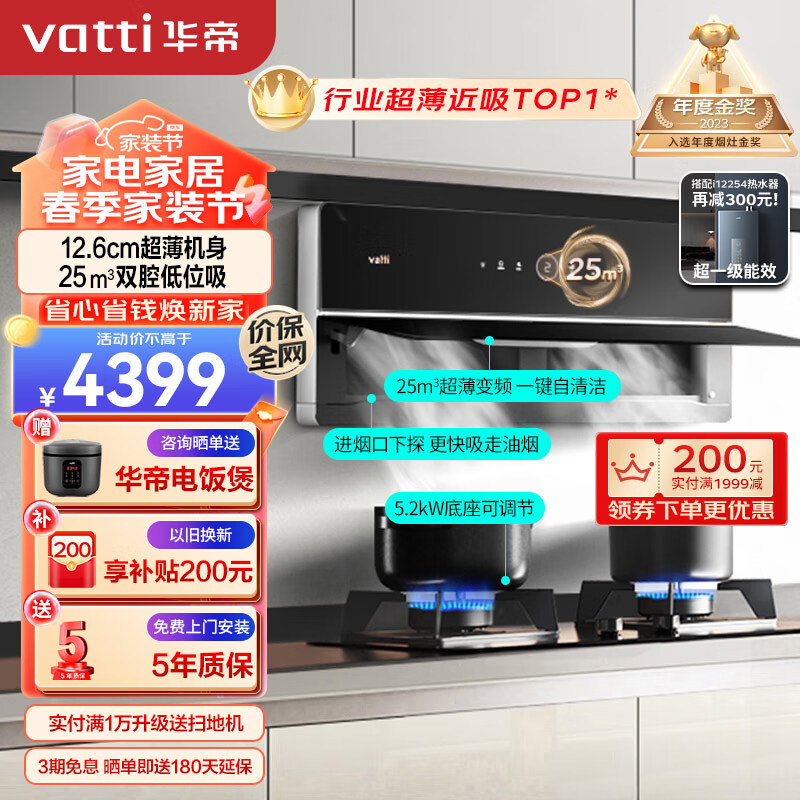华帝(VATTI)抽油烟机超薄近吸理想家X6家用侧吸变频大吸力烟机燃气灶具烟灶套装25风量自动清洗i11210天然气价格:4399.00元!