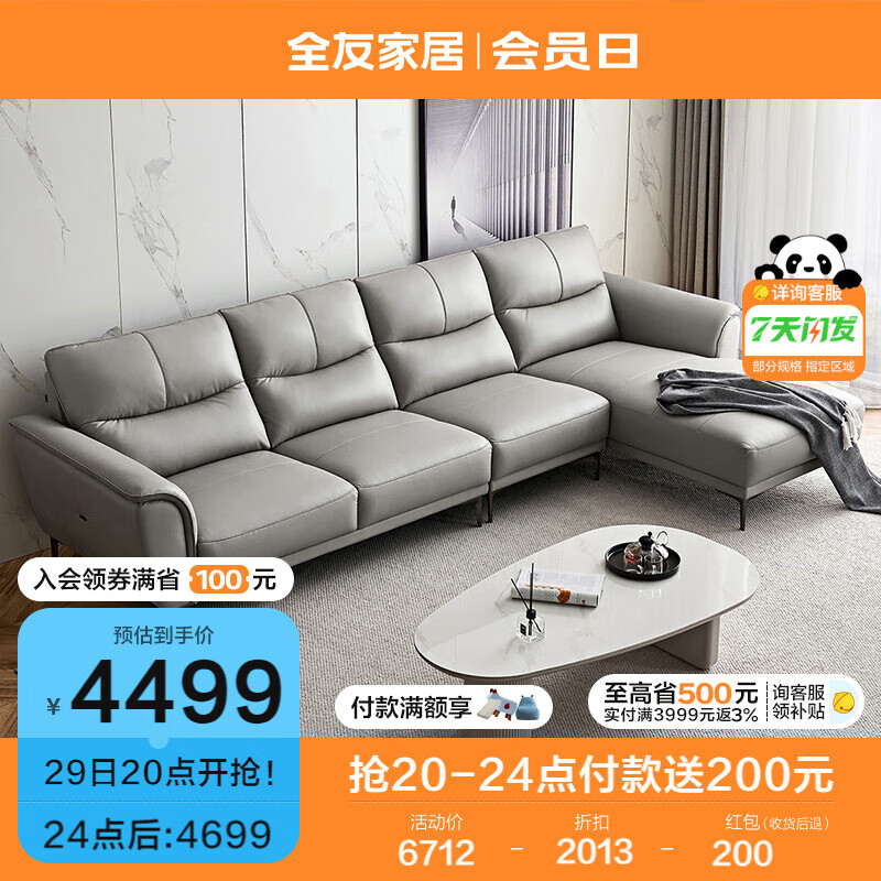 全友家居 转角贵妃沙发客厅现代简约头层牛皮轻奢风真皮艺沙发112011价格:6712.86元!