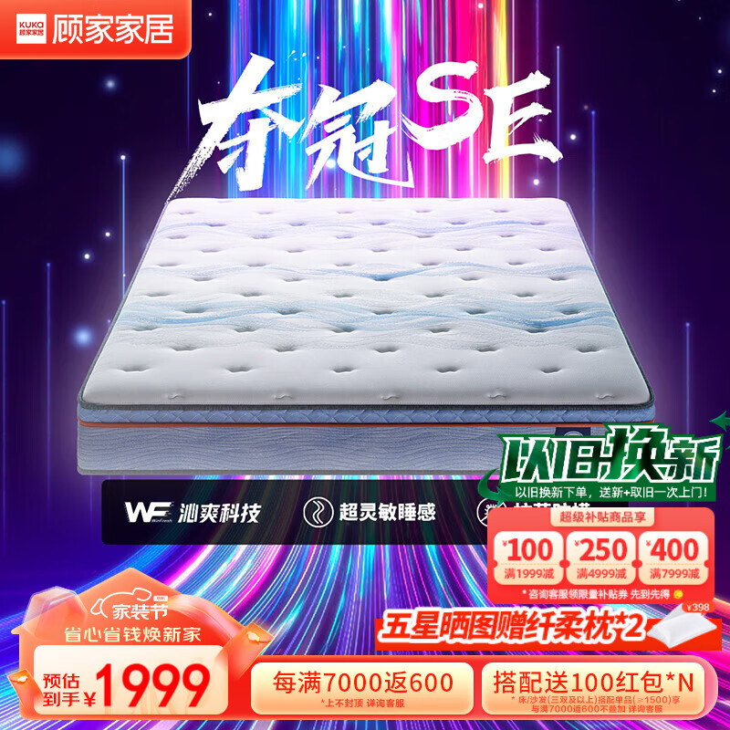 顾家家居【亚运同配置床垫】乳胶弹簧床垫抑菌防螨M1083J夺冠SE-1.8X2米价格:1999.00元!