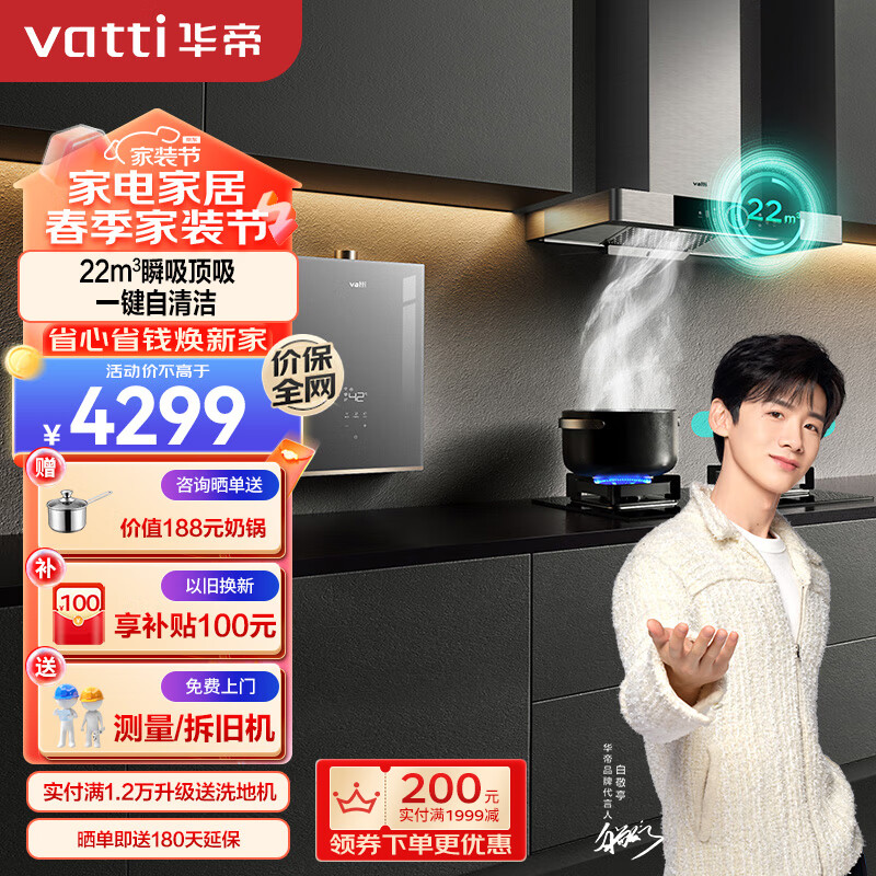 华帝(VATTI)抽油烟机家用欧式油烟机燃气灶具热水器厨房三件套 i11143+72B+152-16(天然气)价格:4299.00元!