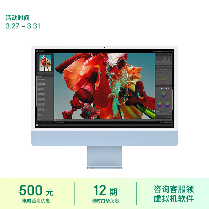 Apple/苹果2023款 iMac 24英寸蓝色 4.5K屏M3(8+10核)16G 512G一体式电脑Z19L0005Z【定制】价格:15499.00元!