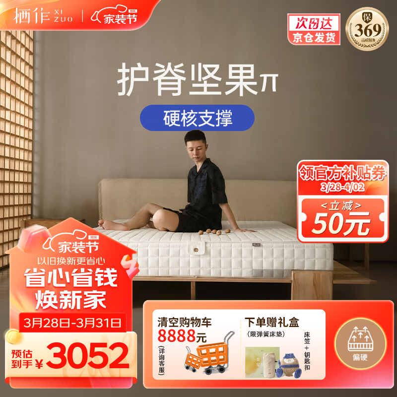 栖作坚果派π二代可拆卸独立弹簧床垫偏硬 厚度21cm 1.5米*2米价格:3652.00元!