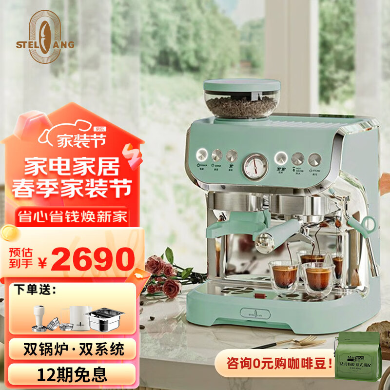 雪特朗(STELANG) 双锅炉双系统意式美式半自动咖啡机磨豆机家用强力蒸汽打奶泡研磨一体机意式咖啡机价格:2690.00元!