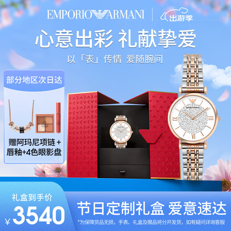 安普里奥·阿玛尼(Emporio Armani)手表女士 满天星AR1926时尚镶钻石英表送老婆生日礼物 女友礼盒价格:3740.00元!