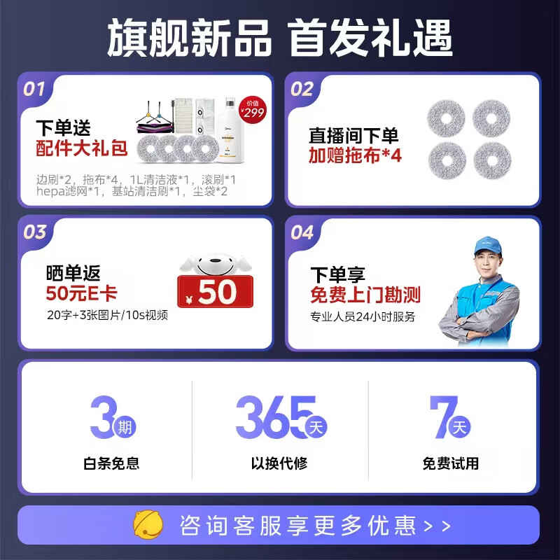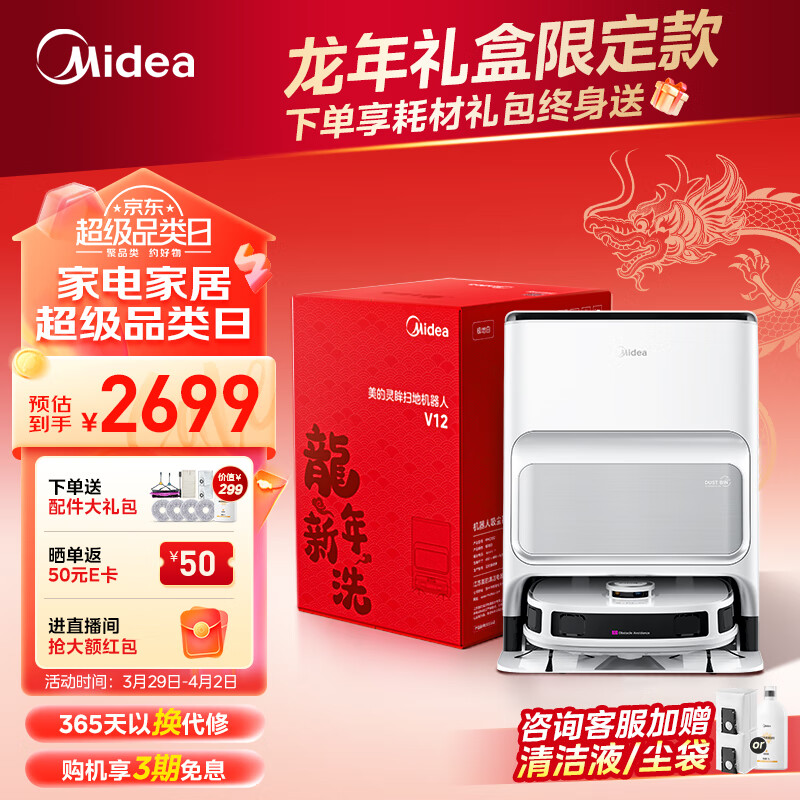 美的(Midea)扫地机器人扫拖一体 灵眸V12极地白【龙年限定礼盒】自动集尘扫拖洗烘一体机洗地机送终身耗材价格:3399.00元!