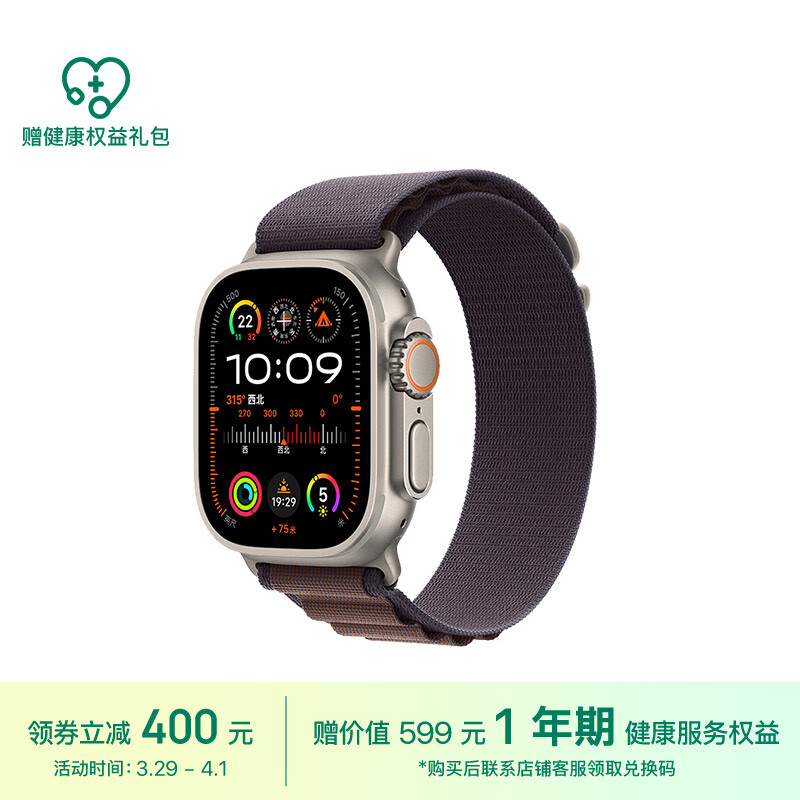 Apple/苹果 Watch Ultra2 智能手表GPS + 蜂窝款49毫米钛金属表壳靛蓝色高山回环式表带小号MRFE3CH/A价格:6499.00元!