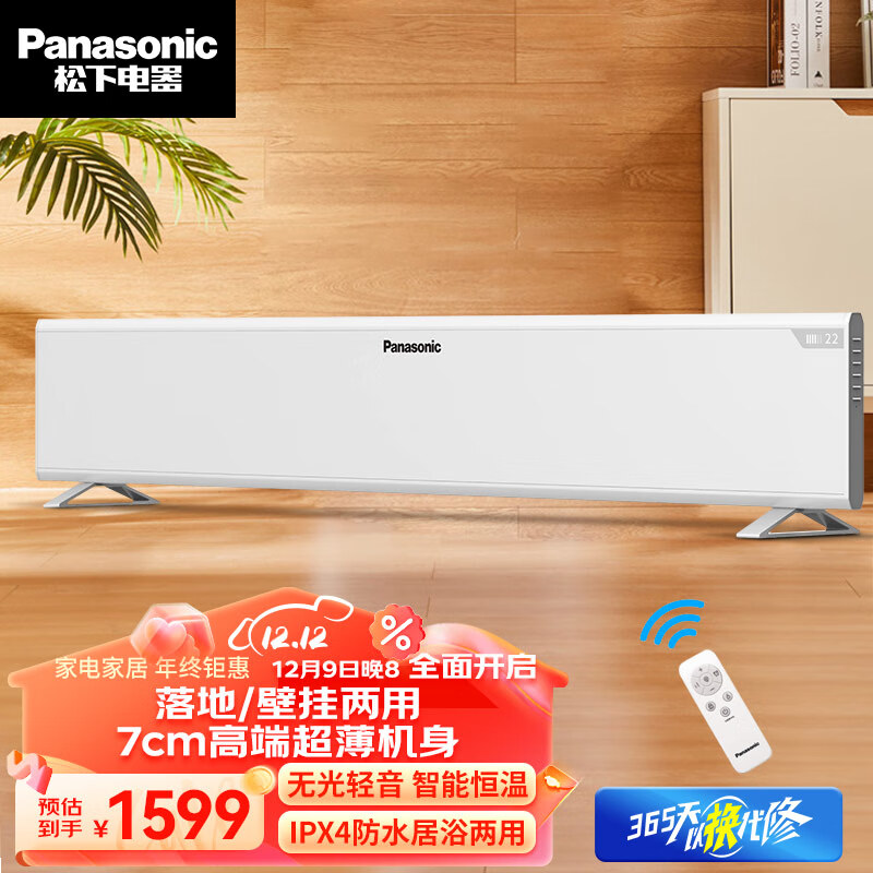 松下(Panasonic)踢脚线取暖器家用电暖器浴室电暖气恒温移动地暖遥控对流电暖气片壁挂两用DS-AT1522CW价格:1999.00元!