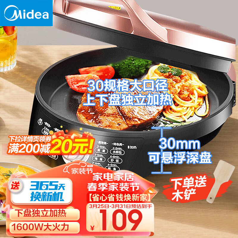 美的(Midea) 电饼铛 家用双面加热电饼档煎饼锅 可做三明治 旋控式加深加大烤盘早餐机煎烤机烙饼锅 无极档位丨WJH3002(JK30EASY202)价格:199.00元!