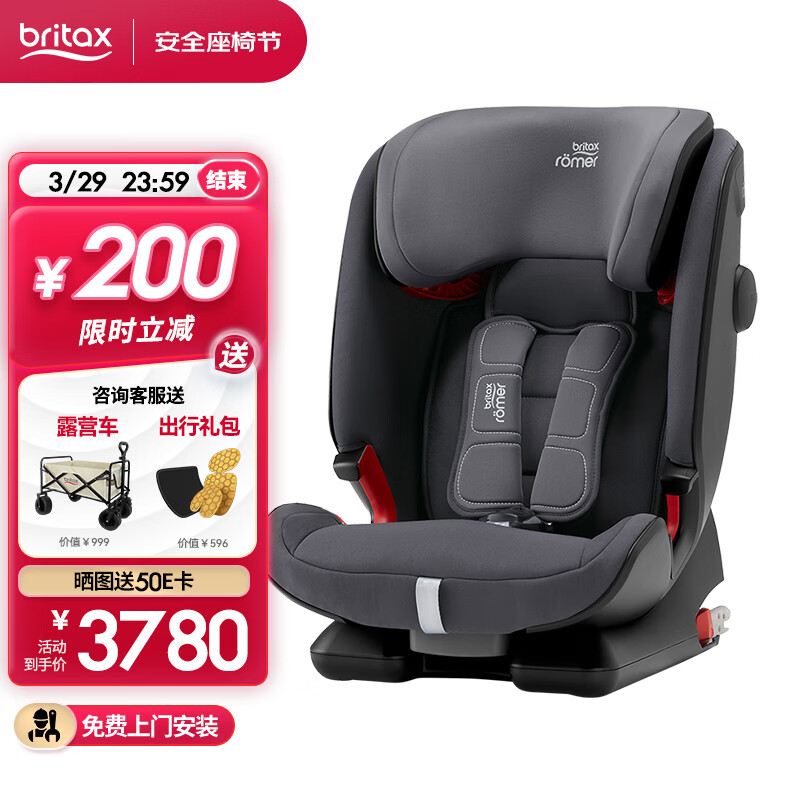 宝得适(BRITAX)儿童座椅9个月-12岁德国进口isofix接口 百变骑士isize灰价格:3980.00元!