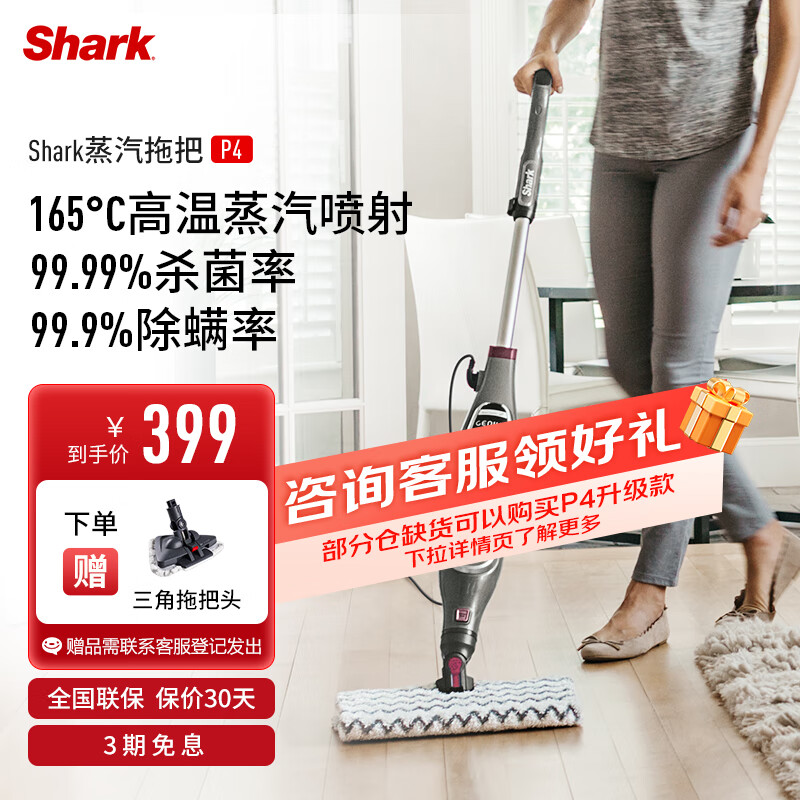 shark鲨客 蒸汽拖把 家用厨房清洁擦地拖地清洁机 高温蒸汽除菌 电动手持洗地机吸尘器伴侣P4价格:399.00元!