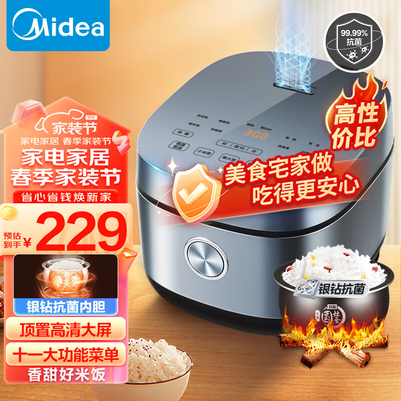 美的(Midea)电饭煲电饭锅4L银钻内胆11大菜单家用智能电饭煲大火力家用智能电饭煲MB-RE473(3-8人)价格:259.00元!