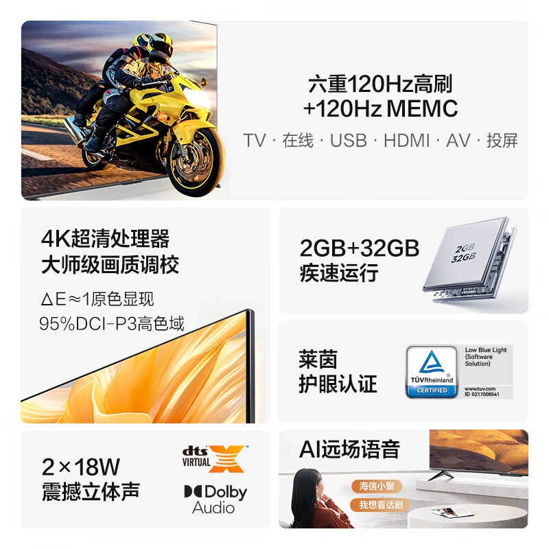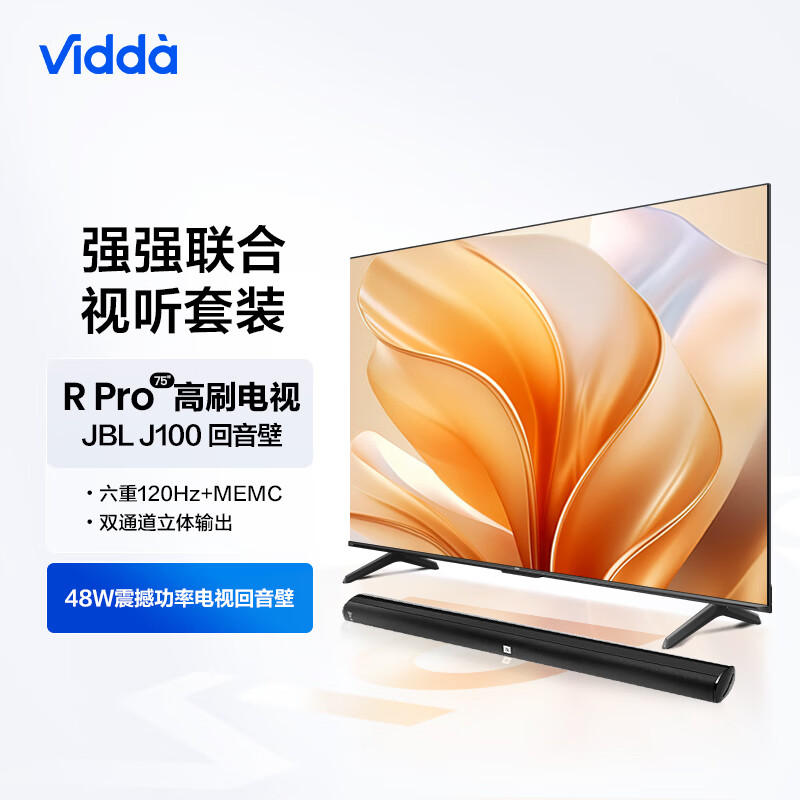 Vidda R75 Pro 海信 75英寸 120Hz高刷 2+32G大内存电视+JBL J100 48W震撼功率 双通道立体输出回音壁价格:3599.00元!