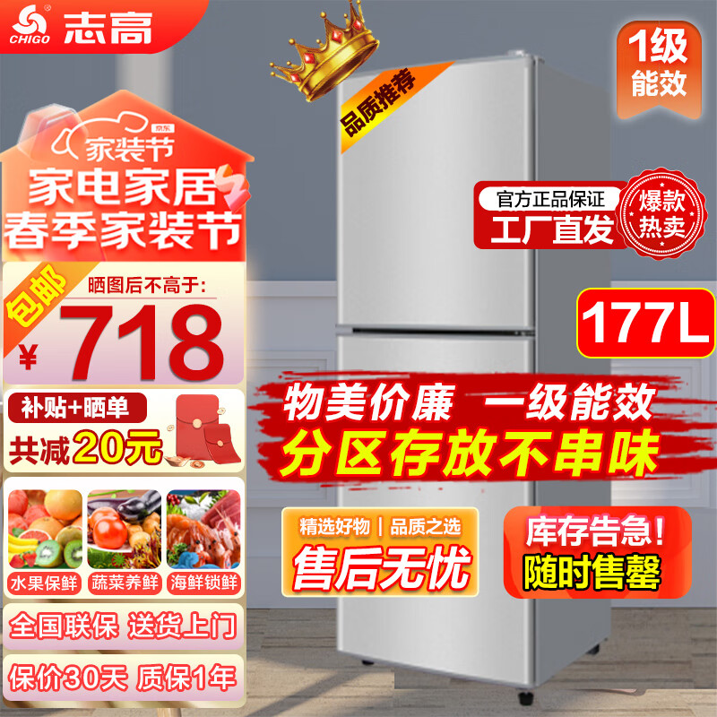 志高(CHIGO)177升双门冰箱小型家用电冰箱二门两门 一级能效节能省电宿舍租房小冰箱价格:738.00元!