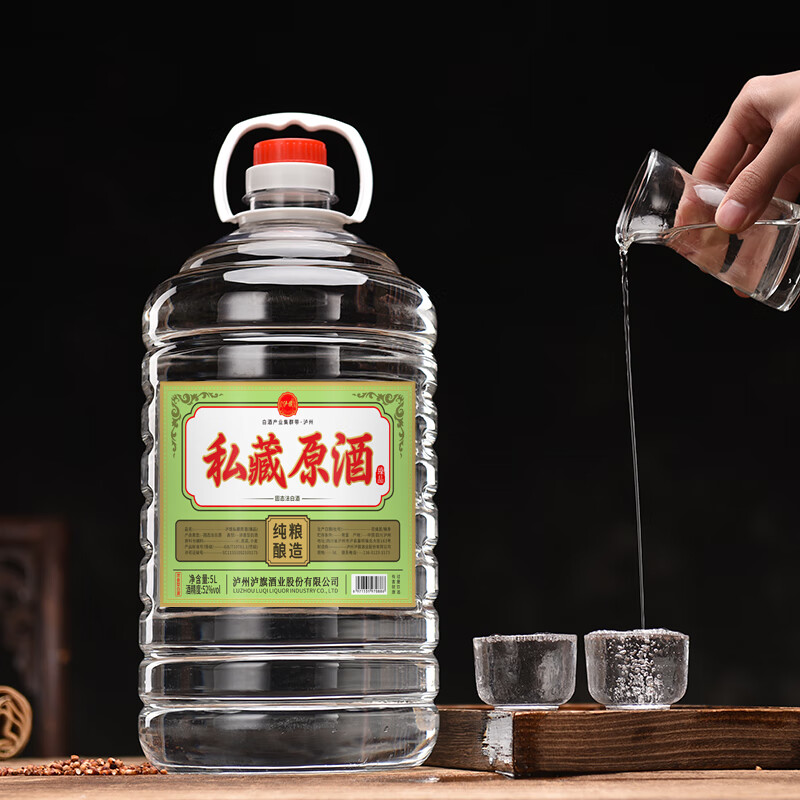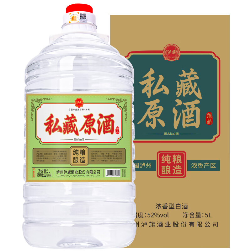 泸旗私藏原浆 浓香型52度5L纯粮食白酒 散装桶装白酒价格:378.00元!