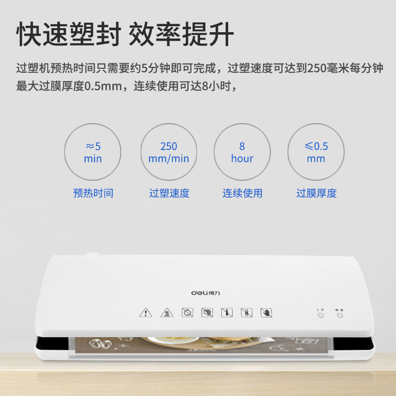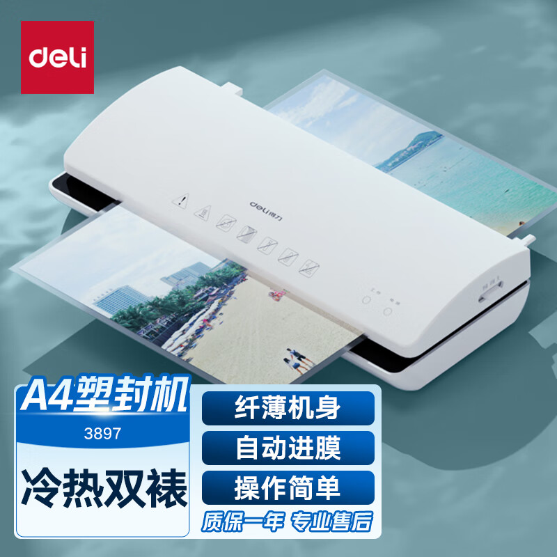 得力家用办公照片塑封机过塑机可用a4及以下塑封过塑膜小型商用相片过胶压膜机封膜机覆膜机 3897价格:179.00元!