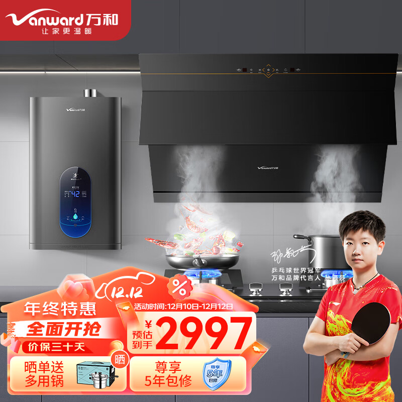 万和(Vanward)烟灶热三件套 侧吸式自动清洗 油烟机燃气灶具热水器厨房多件套装DJ738+B7L51+ME5D16(天然气)价格:2997.00元!