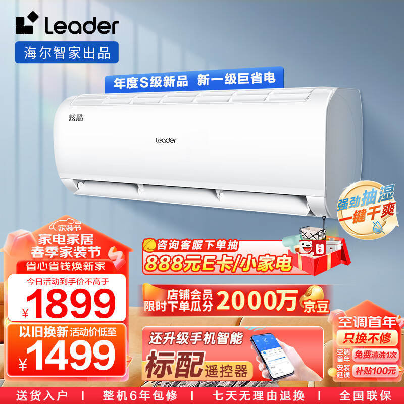 Leader 海尔智家出品 炫酷 小1.5匹挂机 新一级能效 变频自清洁大风量 KFR-32GW/02XCA81TU1价格:1899.00元!