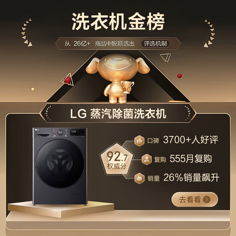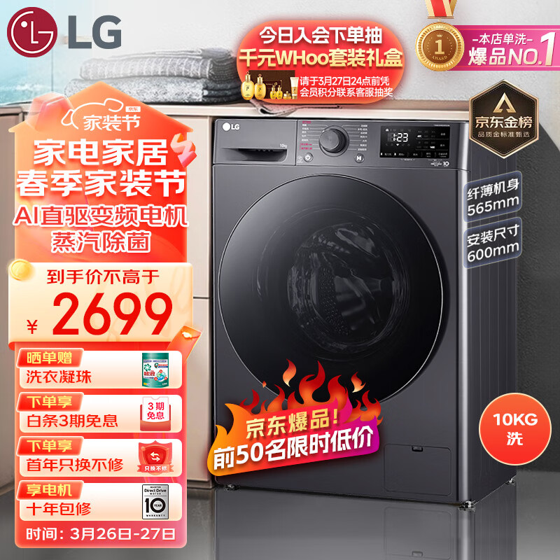 LG 星云黑 10KG超薄全自动 滚筒洗衣机 蒸汽除菌洗护 AIDD直驱变频 家用洗衣机 黑色FCY10Y4M价格:2699.00元!