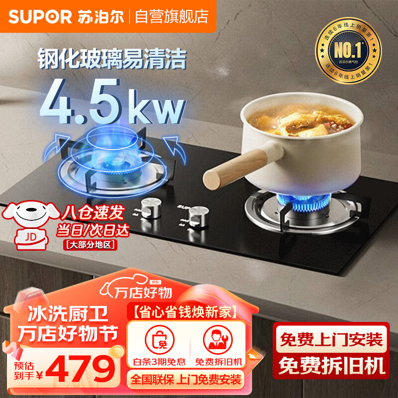 苏泊尔(SUPOR)燃气灶家用天然气灶液化气灶双灶台式嵌入式两用灶具NB15 【罐装液化气】4.5KW蓝焰猛火价格:428.00元!