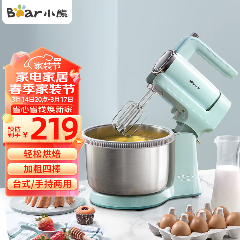 小熊(Bear)打蛋器 家用电动打蛋机 奶油奶盖打发器 烘焙手持自动搅蛋器 搅拌器DDQ-B03V1价格:219.00元!