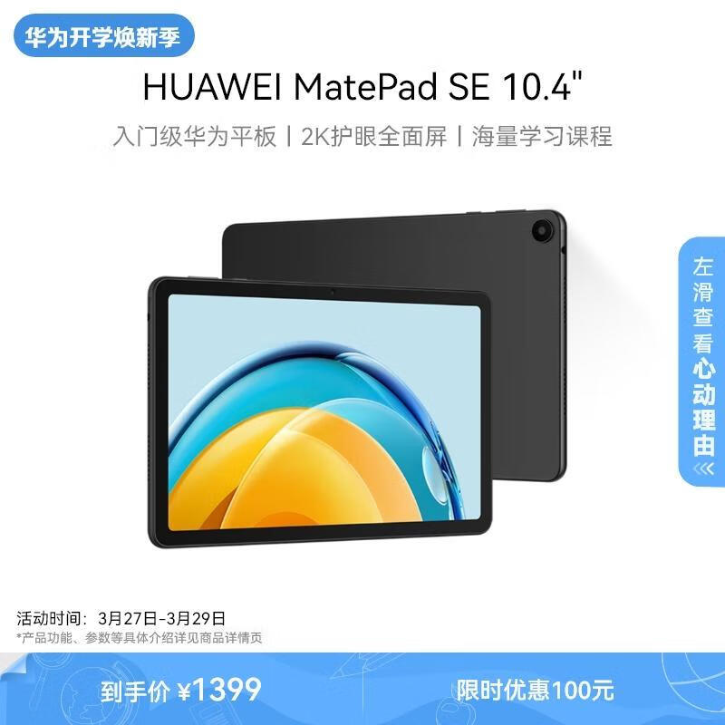 华为HUAWEI MatePad SE 2023 10.4英寸2K护眼屏 影音娱乐办公学习平板电脑6+128GB LTE(曜石黑)价格:1399.00元!