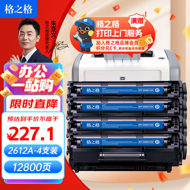 格之格2612a硒鼓 1020硒鼓适用惠普m1005硒鼓 1010 3050 3015 3052佳能lbp2900 3000打印机墨盒 易加粉4支装价格:233.00元!