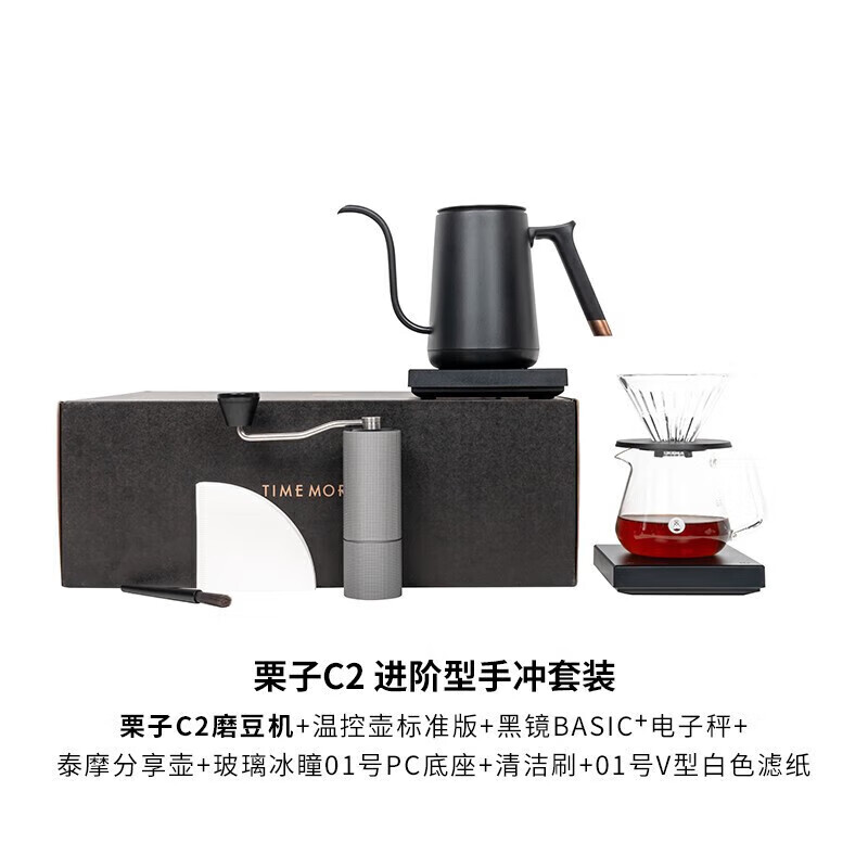泰摩栗子C手冲咖啡壶套装礼盒 温控手冲壶+磨豆机+咖啡秤+滤杯7件装价格:1050.00元!