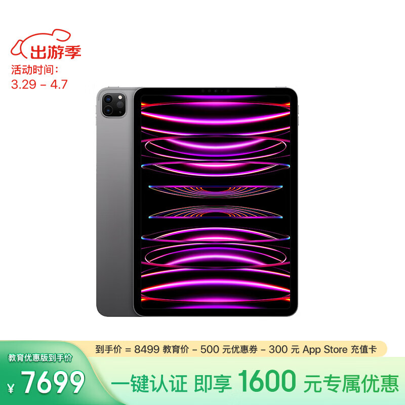 Apple/苹果【教育优惠】iPad Pro 11英寸 2022款(512G WLAN版/M2芯片/MNXH3CH/A)深空灰色价格:8499.00元!